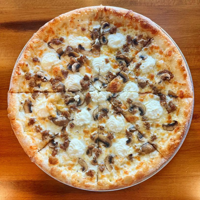 This rich and savory pie layers creamy mozzarella-provolone with hearty italian sausage, earthy mushrooms, and dollops of velvety ricotta. Finished with a drizzle of decadent truffle oil, it's indulgence at it's finest.